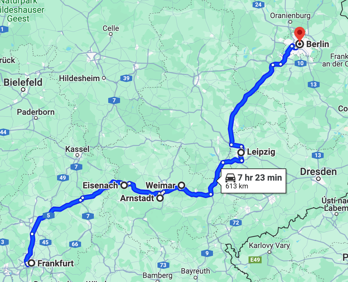 We continued on to Eisenach, a medieval town in central Germany where Bach was born. It was a little over two hours of driving from the center of Frankfurt, right on the autobahn, for which we had built up some anxiety/fear due to the myth around it. But it was actually perfectly fine. Just a fine example of German efficiency, in fact. It made us wish drivers back home were as good.